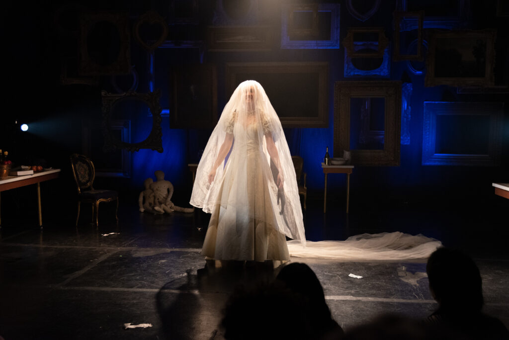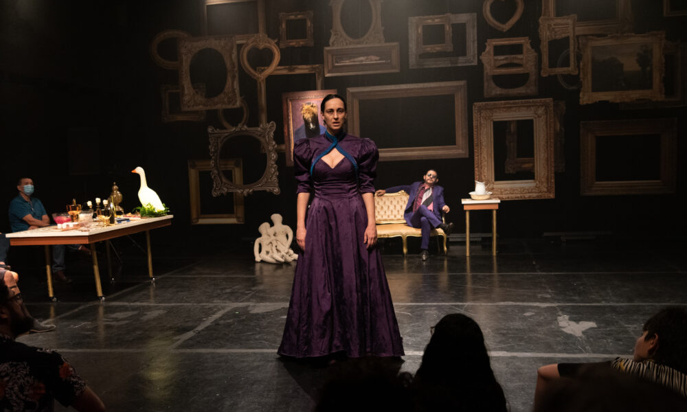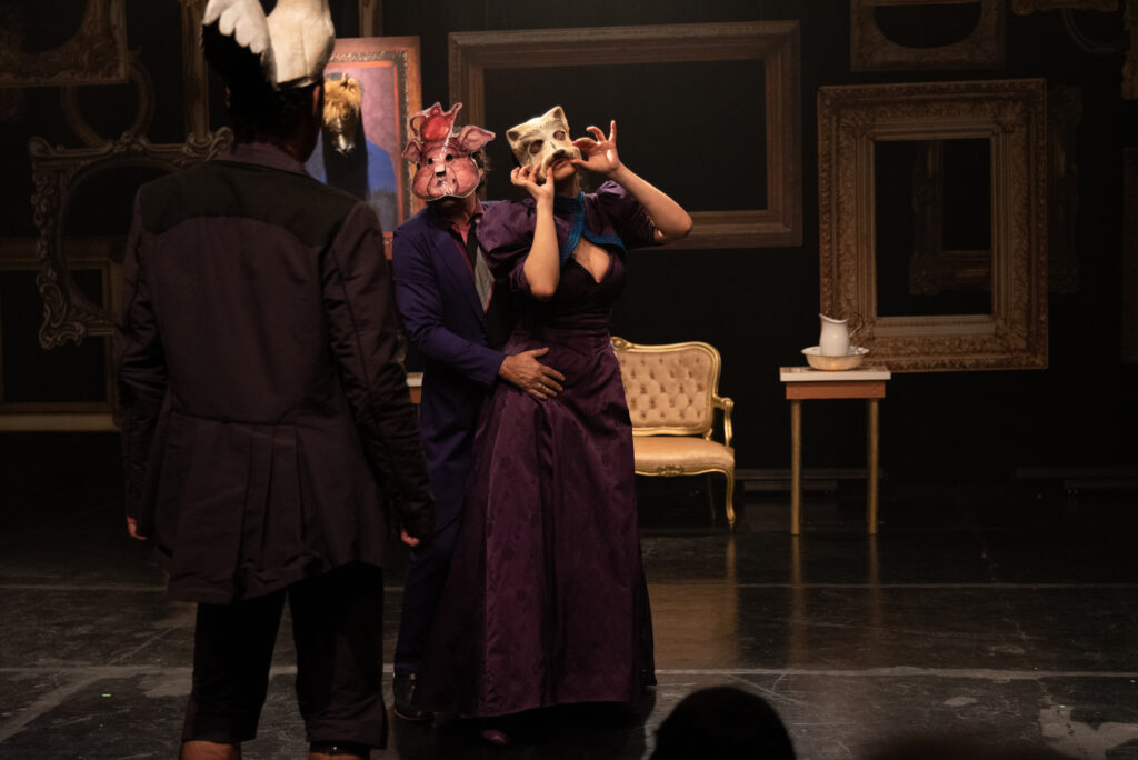 “Na festa, além deles, há outros convidados que não vemos, estão subtraídos na encenação, são apenas mencionados. São aparências e ausências”, diz. Na dramaturgia, os três personagens contracenam e, também, monologam sobre suas histórias. A festa não acontece de maneira cronológica. “O passado irrompe de repente e toma conta da cena. A força do que acontece está ali. Entendemos claramente a estória; a potência do drama dos personagens é o que arrebata, por ser tão vertiginoso e por se transformar de uma hora para outra diante dos nossos olhos.”